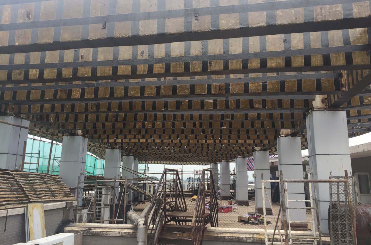 采用特種技術(shù):粘貼鋼板加固、粘貼碳纖維加固、灌漿料澆筑,鋼筋等量代換等